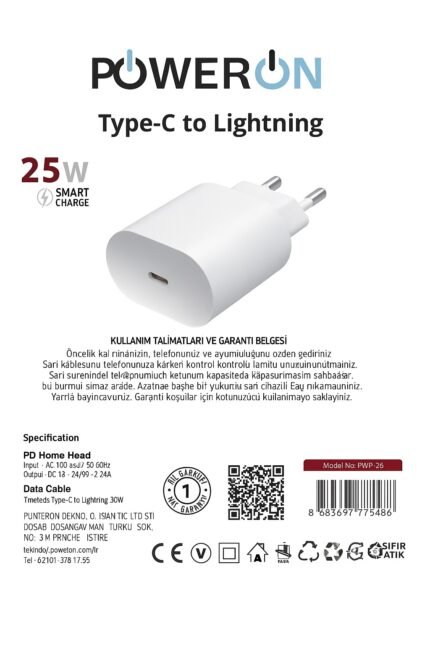 POWERON 25W Type-C to Type-C Şarj Kiti Enerjini Yarım Bırakma